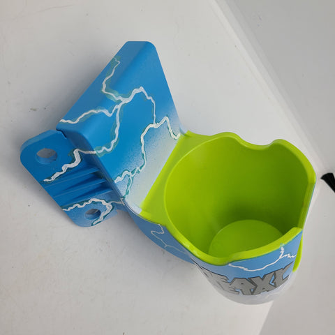 This hand painted PinCup uses the classic colors on the cabinet of your pinball machine. Hold that beverage close by with our stylish and colorful PinCup. Comes with all the necessary hardware for mounting to the side of the leg. Clear coated for added durability.