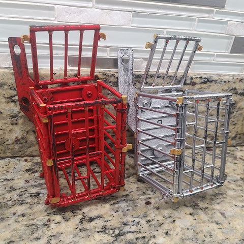 These custom Jaws beer cage holders are not 3D printed, they come with a metal bracket that is strong and held to the leg of your game. They are hand painted to look aged and distressed with painted accents in metallic gold and copper. Available with or without an applique. Similar styled 3D glasses holder is also available. Order yours today as the supplies are limited...