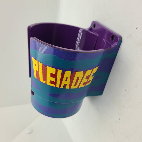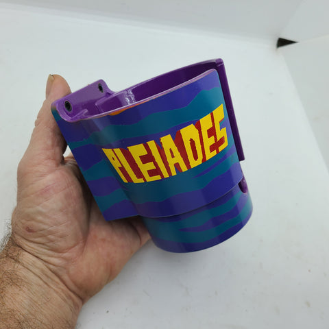 This hand painted PinCup uses the classic colors on the cabinet of your pinball machine. Hold that beverage close by with our stylish and colorful PinCup. Comes with all the necessary hardware for mounting to the side of the leg. Clear coated for added durability.