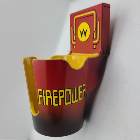 This hand painted PinCup uses the classic colors on the cabinet of your pinball machine. Hold that beverage close by with our stylish and colorful PinCup. Comes with all the necessary hardware for mounting to the side of the leg. Clear coated for added durability.