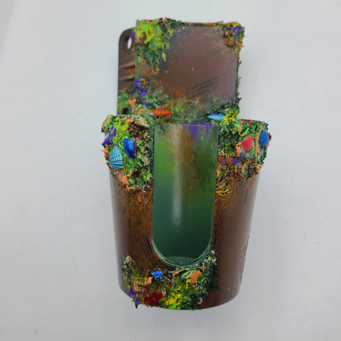 Jersey Jack did it again with an amazing game Pirates of the Caribbean . Encompass the style of the game with a this Special Edition Pincup by Modfather. Custom made adding barnacles, coral growth and real seashells mounted in an artistic way making it a one of a kind on every order. Various colorful paint and metallics creates this beverage holder masterpiece. These require more time to make , so be patient it is worth it. This hand painted PinCup uses the classic colors on the cabinet of your pinball machine with colorful corals, shells and sealife.