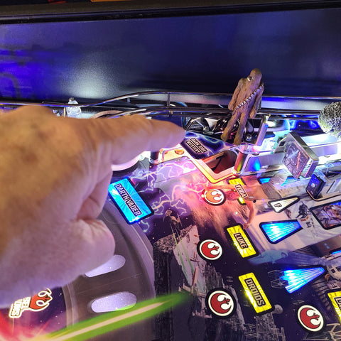 Each piece has been modified to ensure proper fit in the playfield without obstructing the ball.  Highly detailed and very durable.  Looks great  mounted in the back.  Custom brackets have been added to allow these characters to fit just right, while maintaining clearances. Can be placed under any set screw at any desired location on the playfield  Measures 3  inches tall, installs in just seconds.