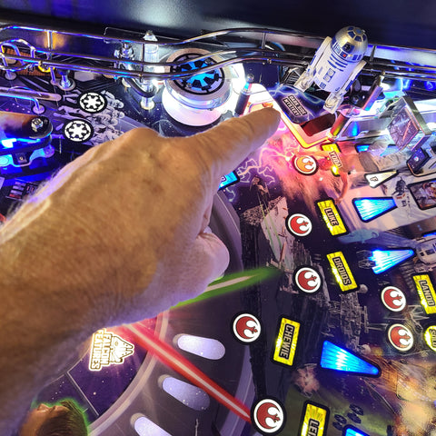 This resourceful astromech droid is a great addition to a Star Wars. Made from resin, this highly detailed piece measures 2.75 inches tall. Comes with a custom bracket that can be placed under any set screw of your desired location on a playfield.