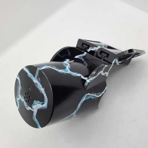 These PinCups have been custom painted to enhance the color scheme of your pinball machine. Each PinCup is hand painted using various colors that are present on the exterior of the cabinet. This one has been done in a fire look to match the games theme by blending paints of black, red and yellow to achieve this look. Clear coated at the end to ensure durability.