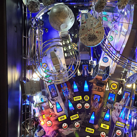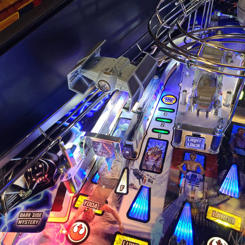 The new Star Wars pinball is an exciting fast flowing game by Steve Ritchie. Bring some more excitement into your game with these stylish Tie fighters. They mount under a set screw towards the left side. Made with a custom metal bracket that fits great on top of the spotlights. They can be repositioned at any angle with its metal bracket design. Easy installation