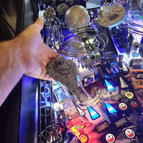 The new Stern Star Wars is super fast , high energy game designed by the great Steve Ritchie. The Star Destroyer is a solid resin cast ship that looks great mounted near the back of the game. This is the Premium version with much more details and larger in size. Comes with a custom metal bracket. Mounts under any set screw. Aproximately 5 inches long . Easy installation.