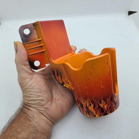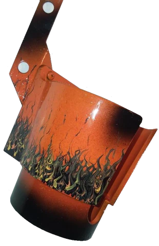 These PinCups have been custom painted to enhance the color scheme of your pinball machine. Each PinCup is hand painted using various colors that are present on the exterior of the cabinet. This one has been done in a fire look to match the games theme by blending paints of black, red and yellow to achieve this look. Clear coated at the end to ensure durability.