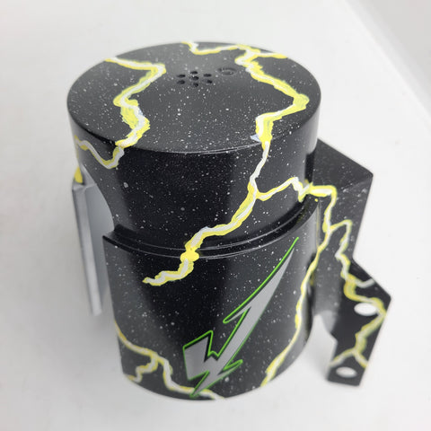 This hand painted PinCup uses the classic colors on the cabinet of your pinball machine. Hold that beverage close by with our stylish and colorful PinCup. Comes with all the necessary hardware for mounting to the side of the leg. Clear coated for added durability.